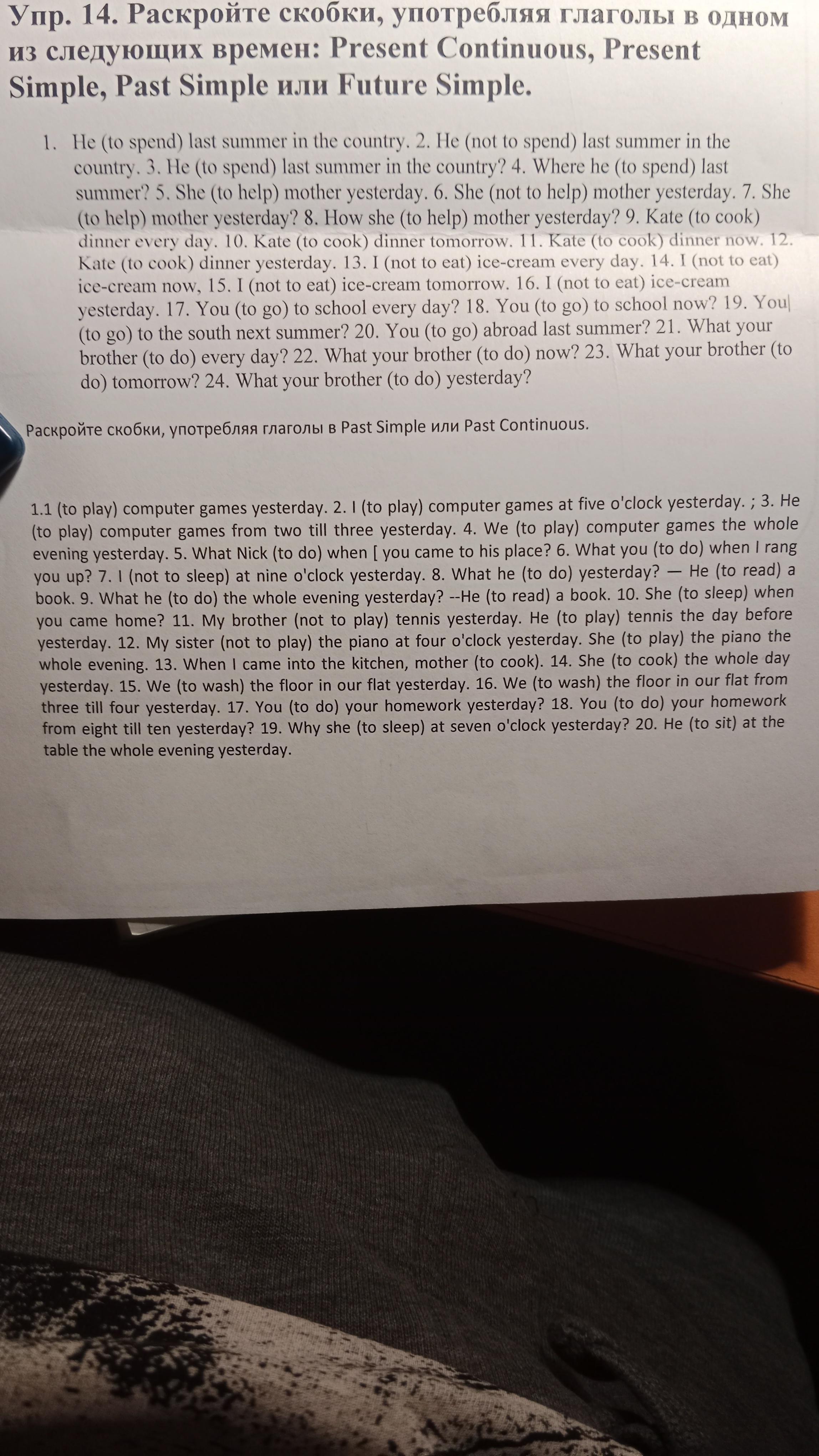 1. Spent 2. Didn’t spend 3. Spent he 4. Where he spent 5. Helped 6. Didn’t help 7. Help she 8. How she helped 9. Cooks 10. Will cook 11. Is cooking 12. Cooked 13. Don’t 14. I’m not 15. Will not 16. Didn’t 17. Do you go 18. Are you going 19. Will you go 20. Did you go 21. What your brother does 22. What is your brother doing 23. What will your brother do 24. what your brother did