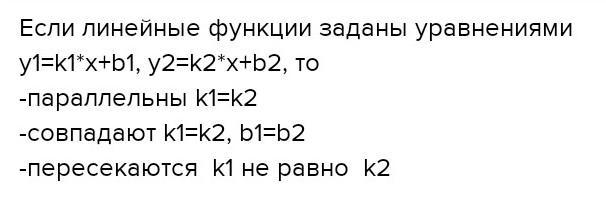 графики могут пересекаться при к1 не равно к2, быть параллельными при k1 равно к2 и совпадать при к1 равно к2, также b1 равно b2.