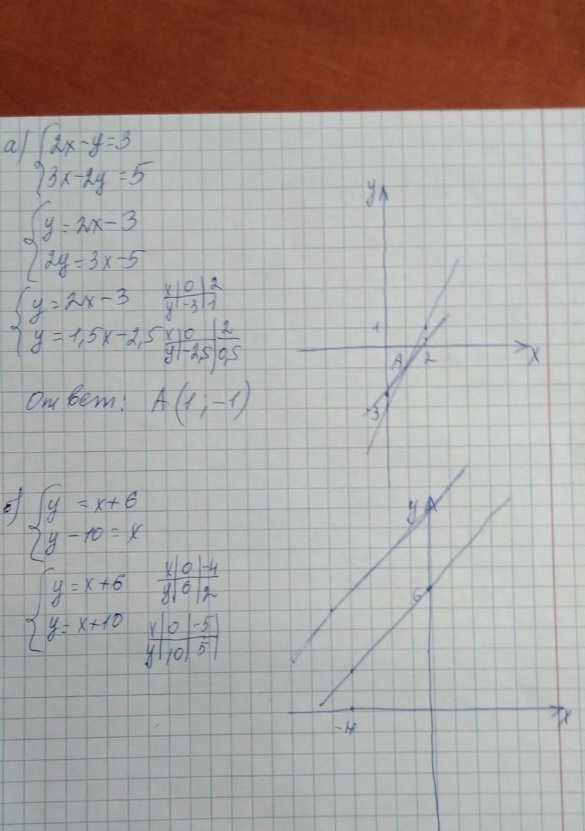 Решите систему уравнений графическим способом. a) 2x-y=3 , 3x-2y=5