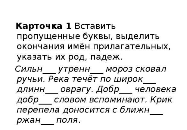 сильный утренний мороз сковал ручьи. Река течëпо широкой длиннойоврагу. Доброе человека добрым словом вспоминают. Крик перепела доносится с ближнего ржаного поля