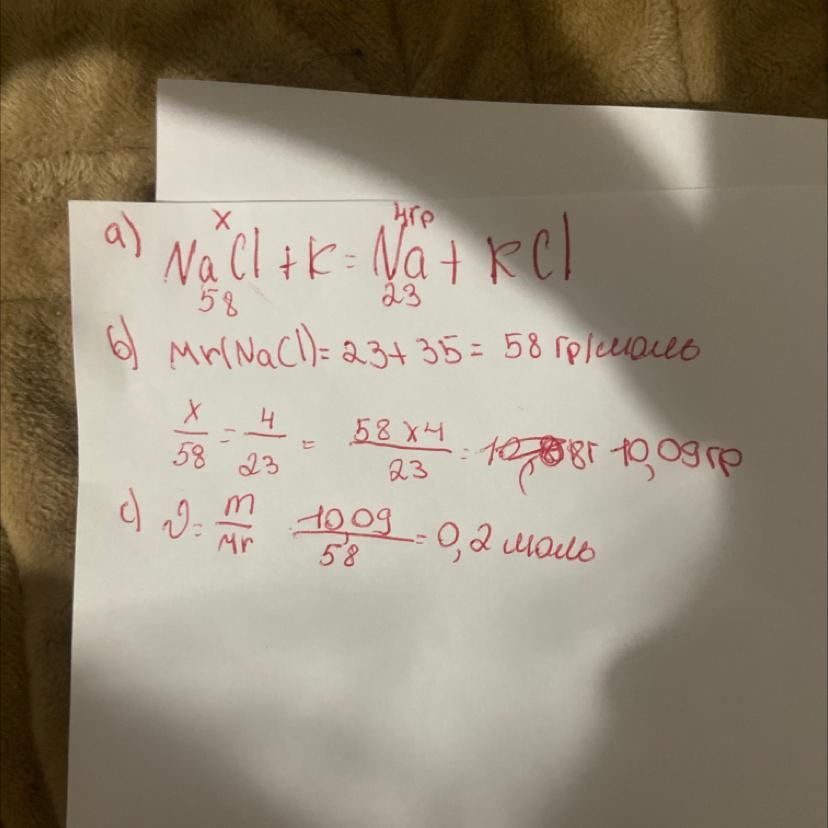 (с) Натрий хлоридінің зат мөлшері есептеңіз.