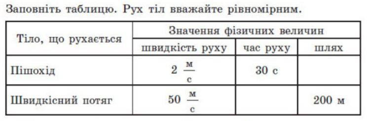 - Швидкісний потяг: 200м : 50м/с = 4с