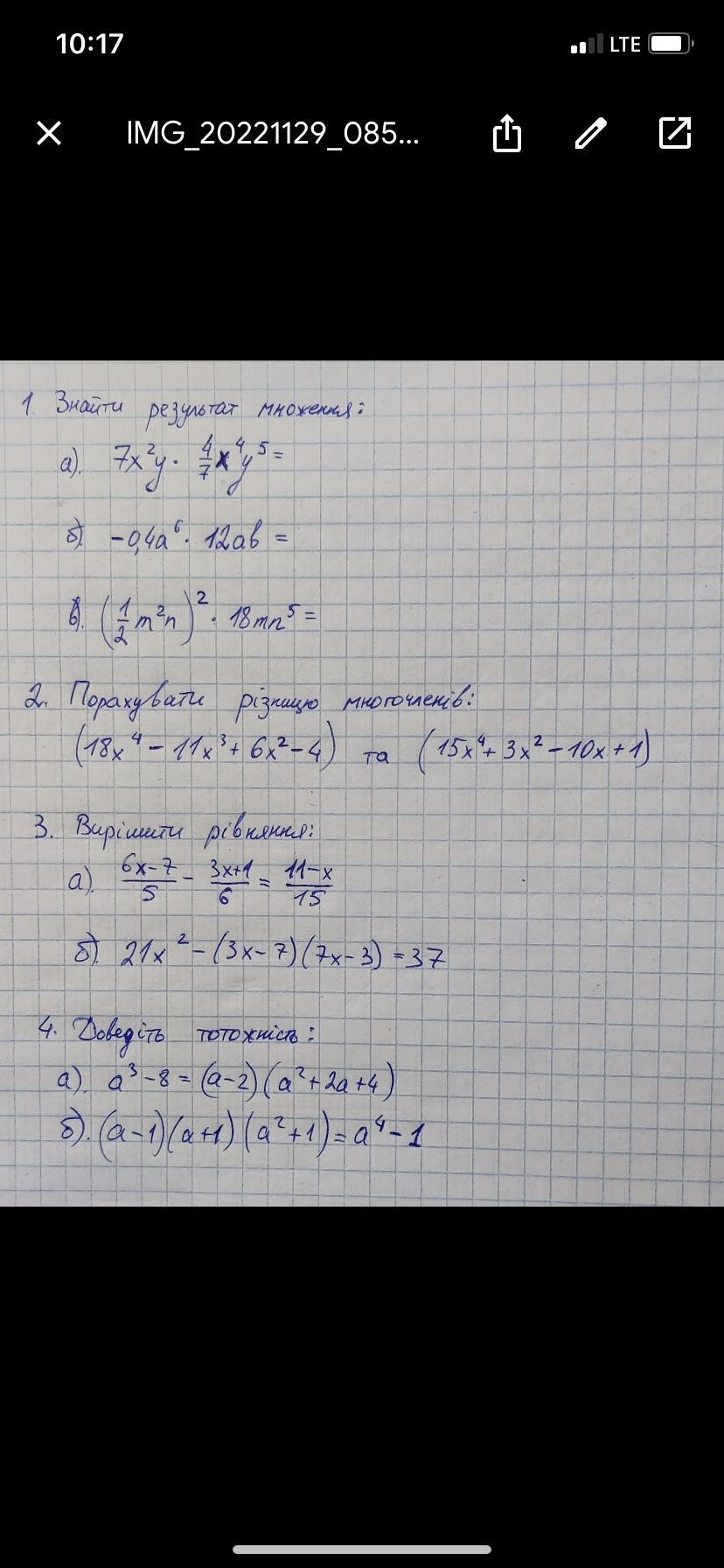 1)а)7х²у•4/7х4у5=4х6у6б)-0,4а6•12а b=-4,8a7b(