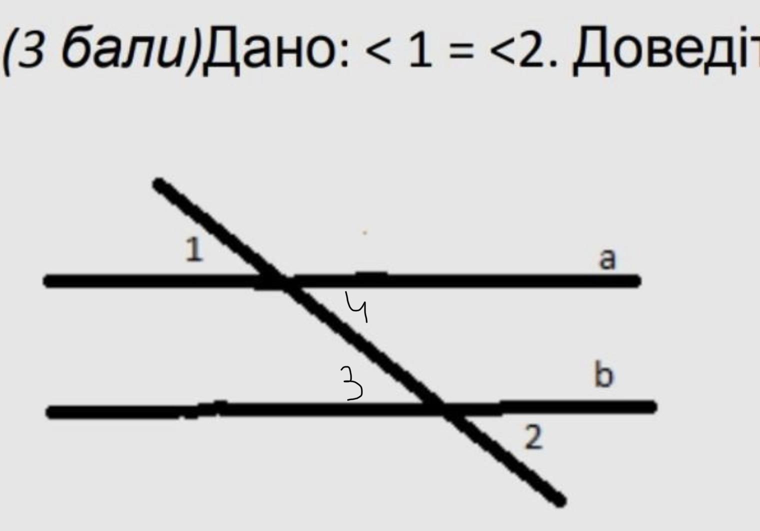 ∠1=∠4 та ∠3=∠2 як вертикальні. ⇒ ∠3=∠4