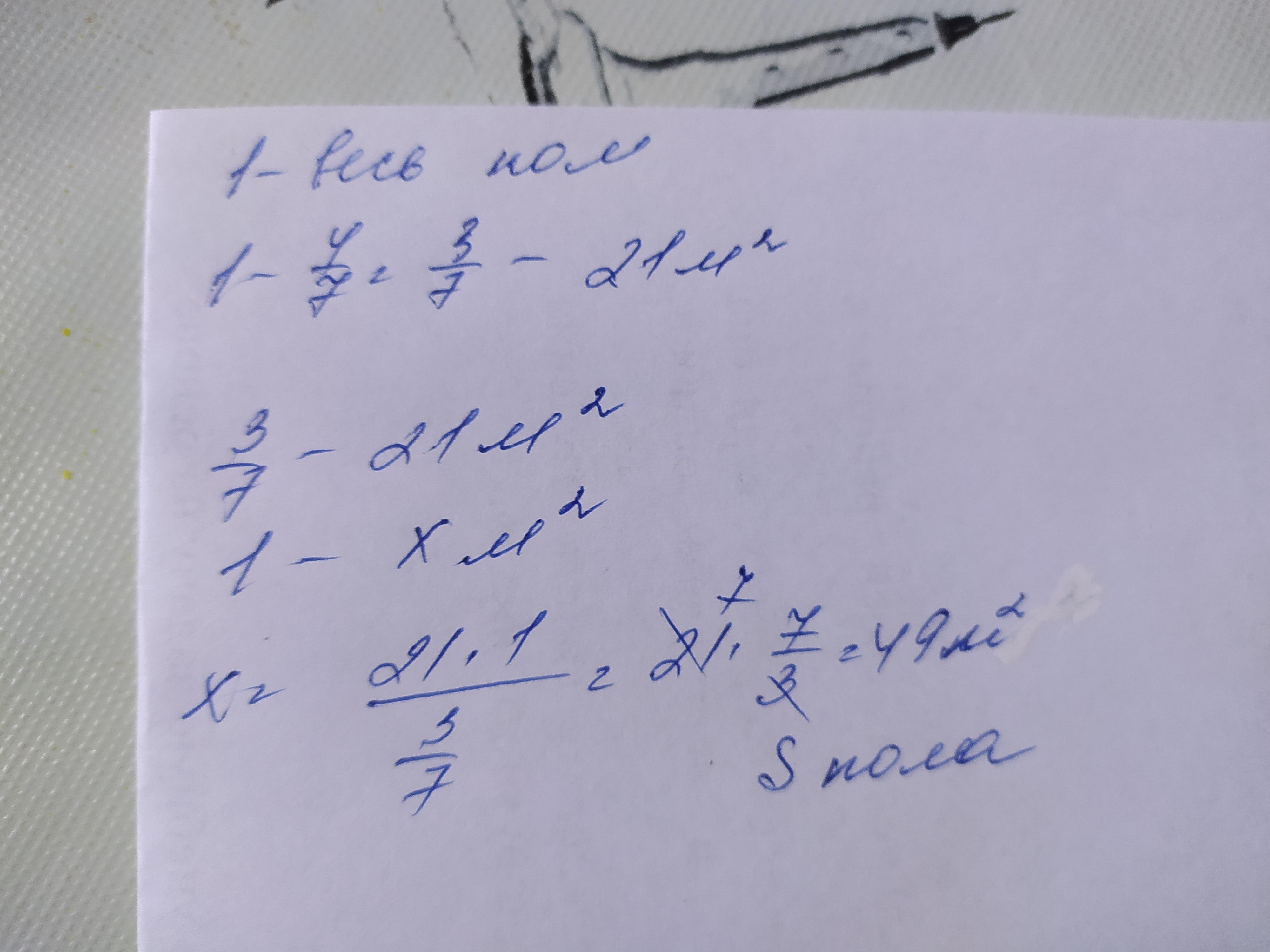 За первый день мастер поцикливал 4/7 паркетный пол, а за второй - остальные 21м 2 . Какая площадь пола?