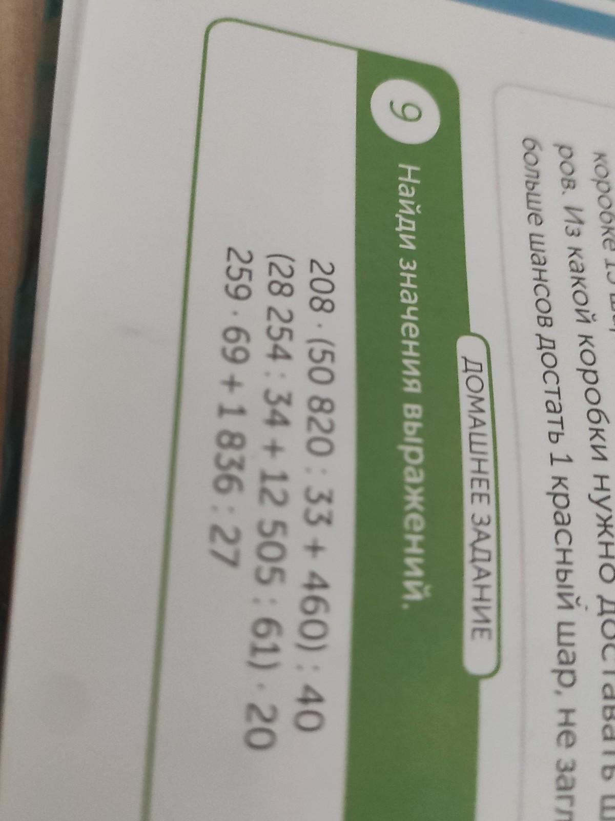 ДОМАШНЕЕ ЗАДАНИЕ 9 Найди значения выражений. 208-(50 820:33+ 460): 40 (28 254:34 + 12 505: 61) - 20 259-69+1 836:27