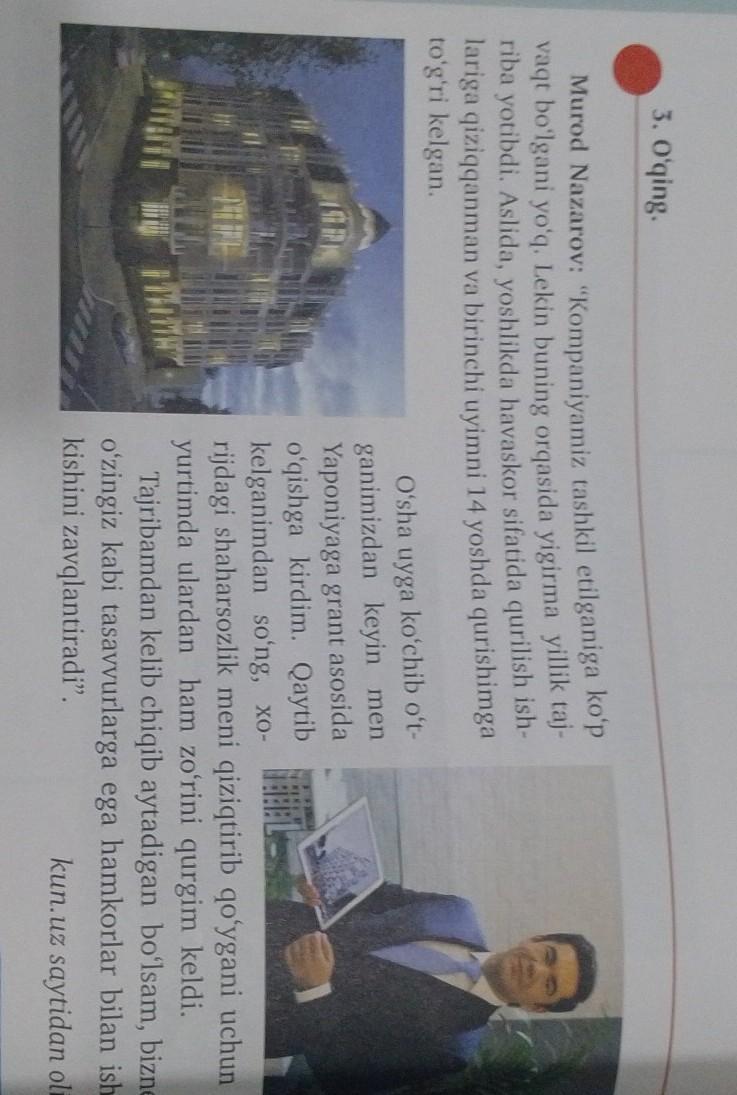 1. Matn kimning tilidan hikoya qilingan? 2. Murod Nazarov birinchi uyini qachon qurgan?