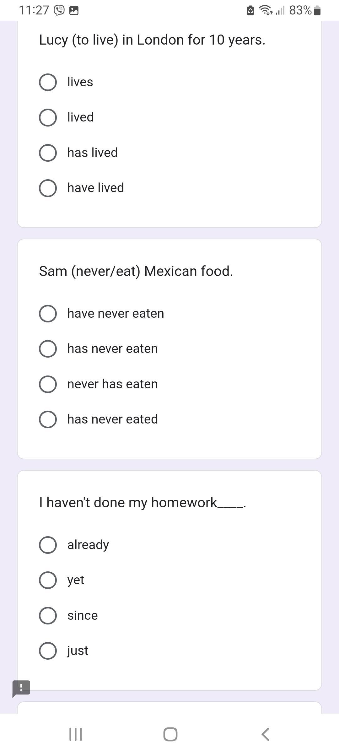 1 lived 2 hav never eaten 3 since
