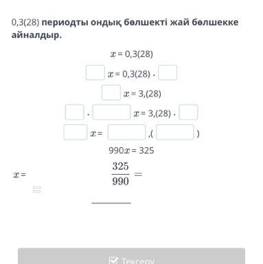 0,3(28) периодты ондық бөлшекті жай бөлшекке