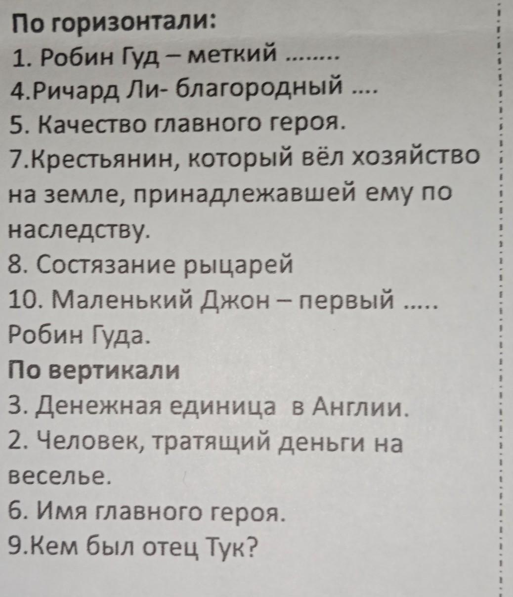1. Робин Гуд-меткий .... 4.Ричард Ли-благородный ....