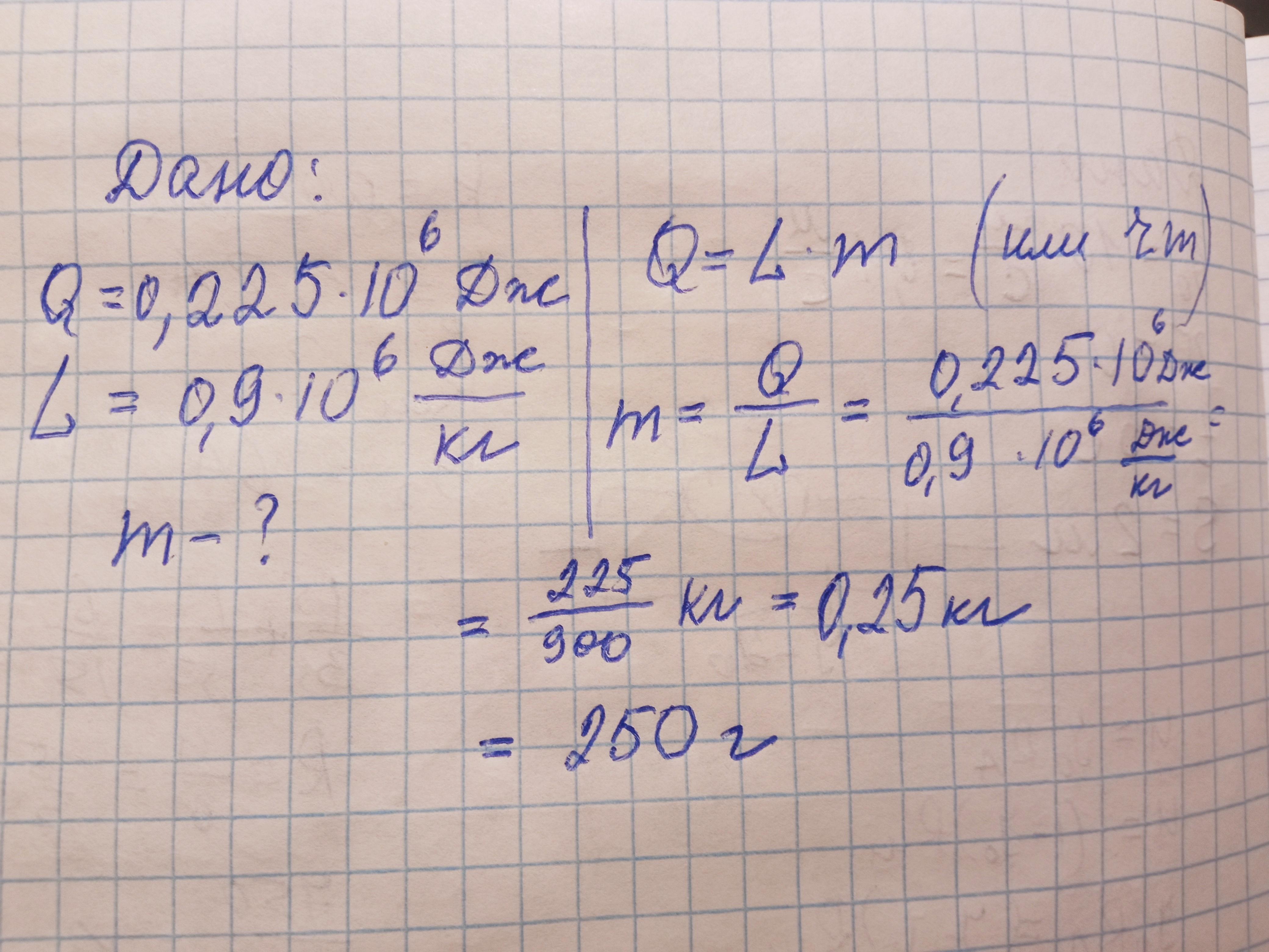РУС/На испарение спирта, взятого при температуре кипения, было израсходовано 0,225 МДж. теплоты.