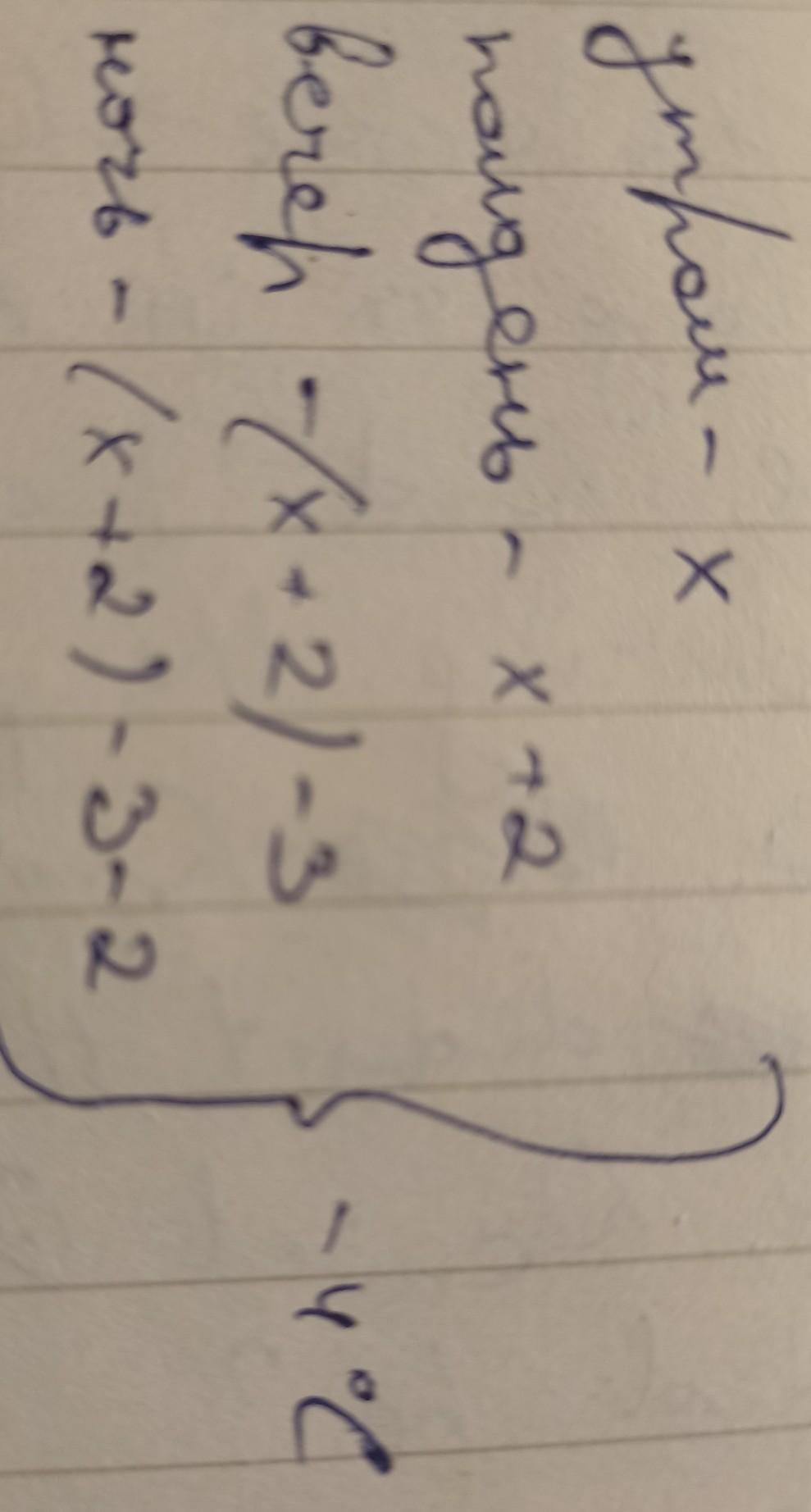 612.Утром температура воздуха была x°C. После того, как в полдень она изменилась на +2°C, к вечеру на -3°C, а ночью ещё на -2°C, она стала равной -4°C.