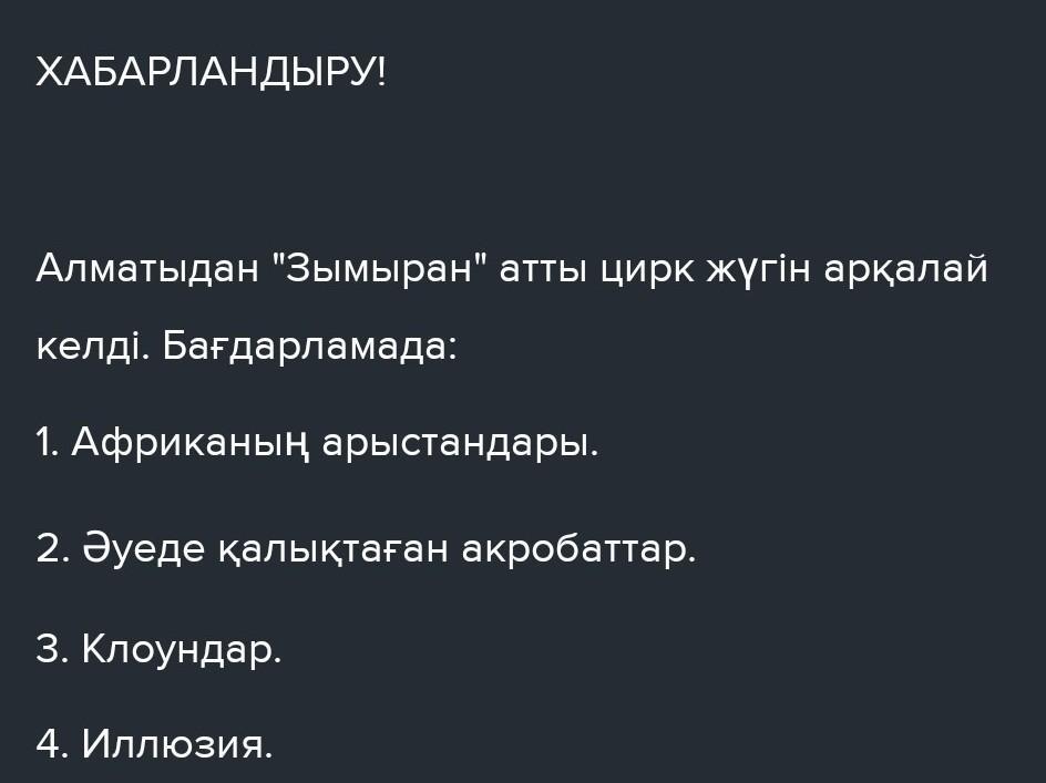 Термин сөздер мен кәсіби сөздерді қатыстырып, цирк қойылымы туралы хабарландыру жазындарр. Көмектесіндершшш 35бал