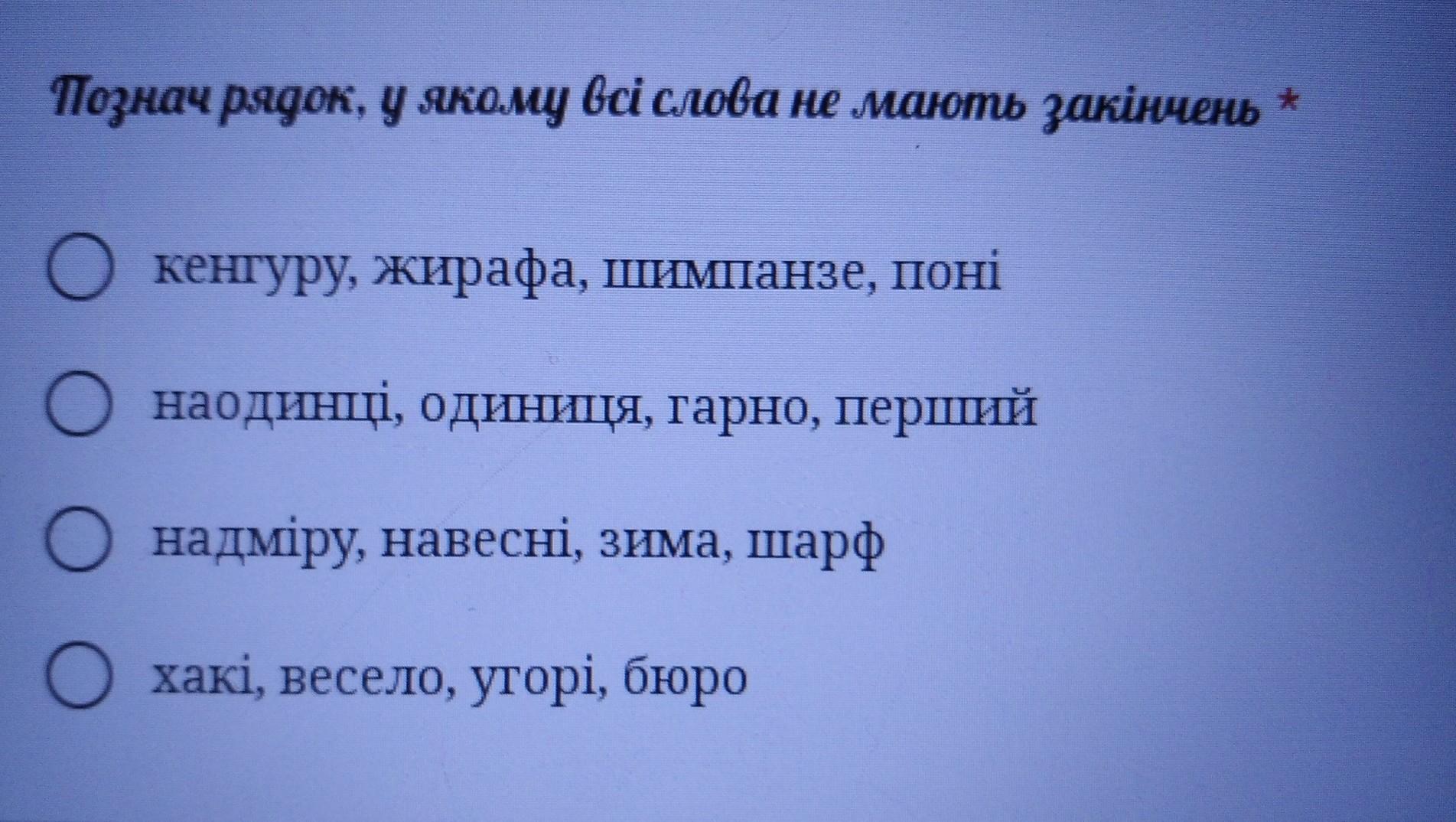 B наодинці, одиниця, гарно, перший C надміру, навесні, зима, шарф