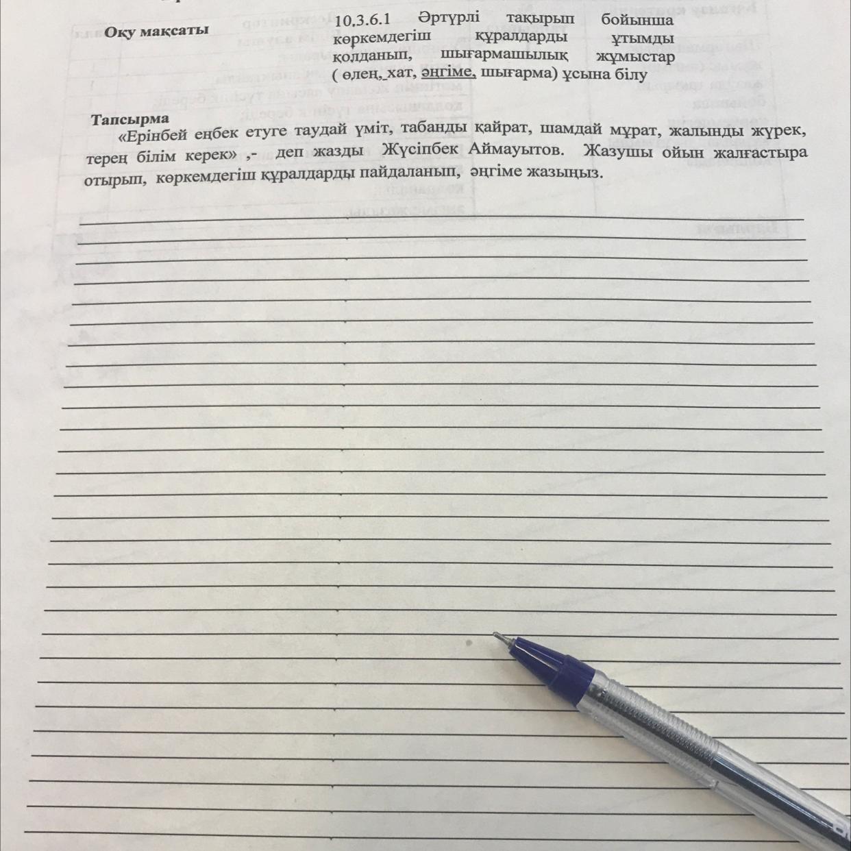 отырып, көркемдегіш құралдарды пайдаланып, әңгіме жазыңыз.