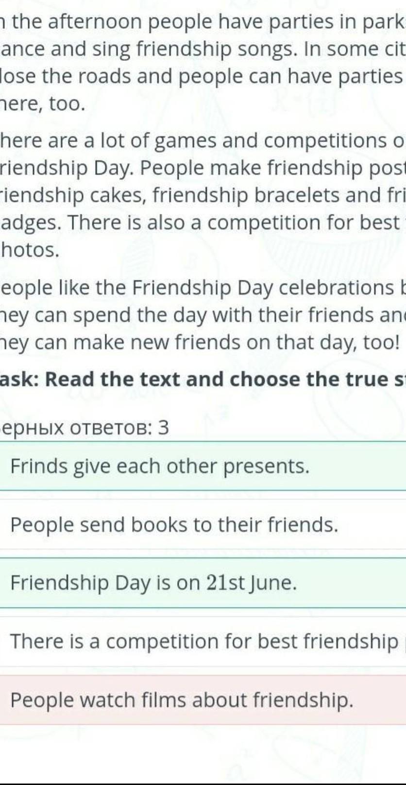 3 Read the poster and answer the questions. 1 When is Friendship Day? 2 Why do Assel, Mariya, Vladimir and Samat think that summer is the best season for celebrations?
