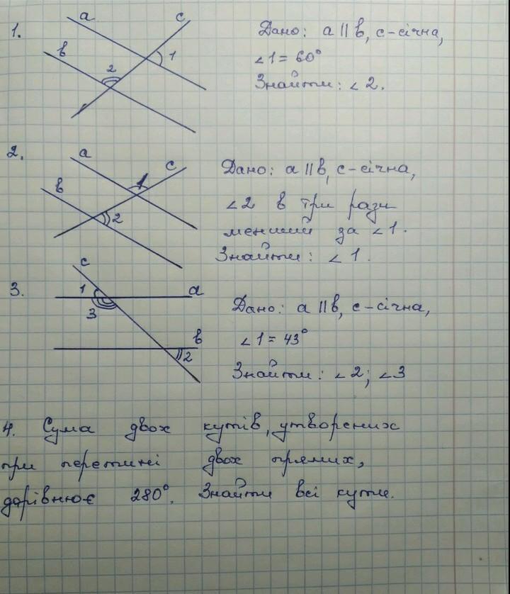 4. Пр перетині двох прямих кути вертикальні і суміжні, сума двох суміжних кутів =180° оскільки в нас дано що сума = 280° робимо висновок що вони вертикальні. Отже