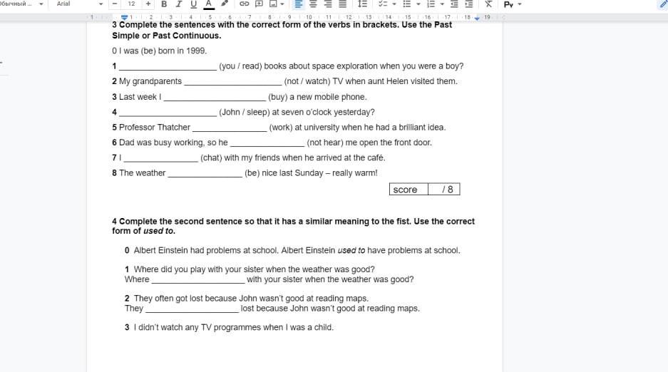 1you read 2 not wathing 3 buying. 4 John slept. 5working.6not heard. 7chaught.8 was