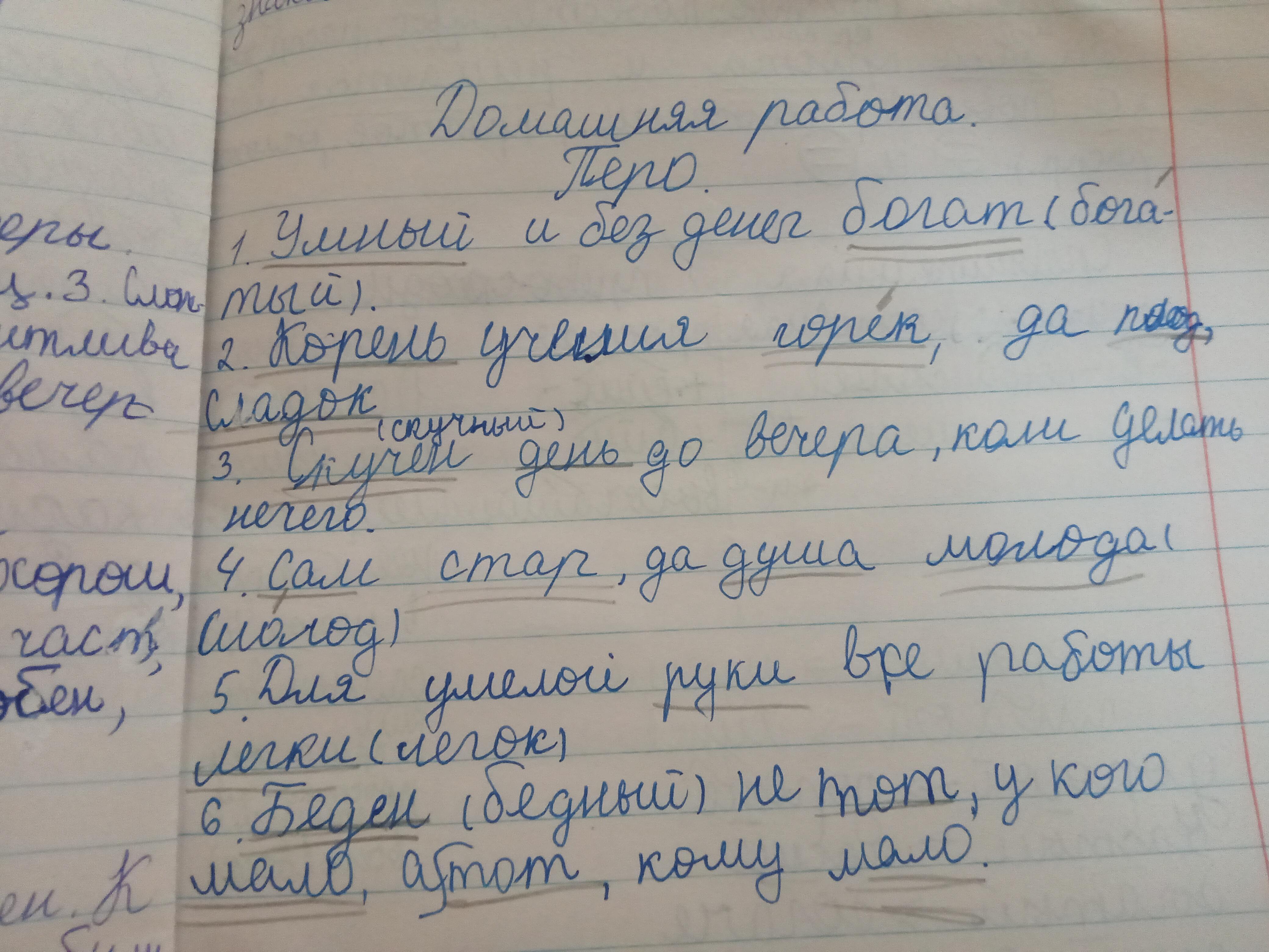 1. Умный и без денег б..гат. 2. Корень учения гор..к, да пло.. сладок. 3. Скуч..н день до вечера, коли делать нечего. 4. Сам стар, да душа м..лода, 5. Для умелой руки все работы ле..ки. 6. Бед..н не тот, у кого мало, а тот, кому мало.