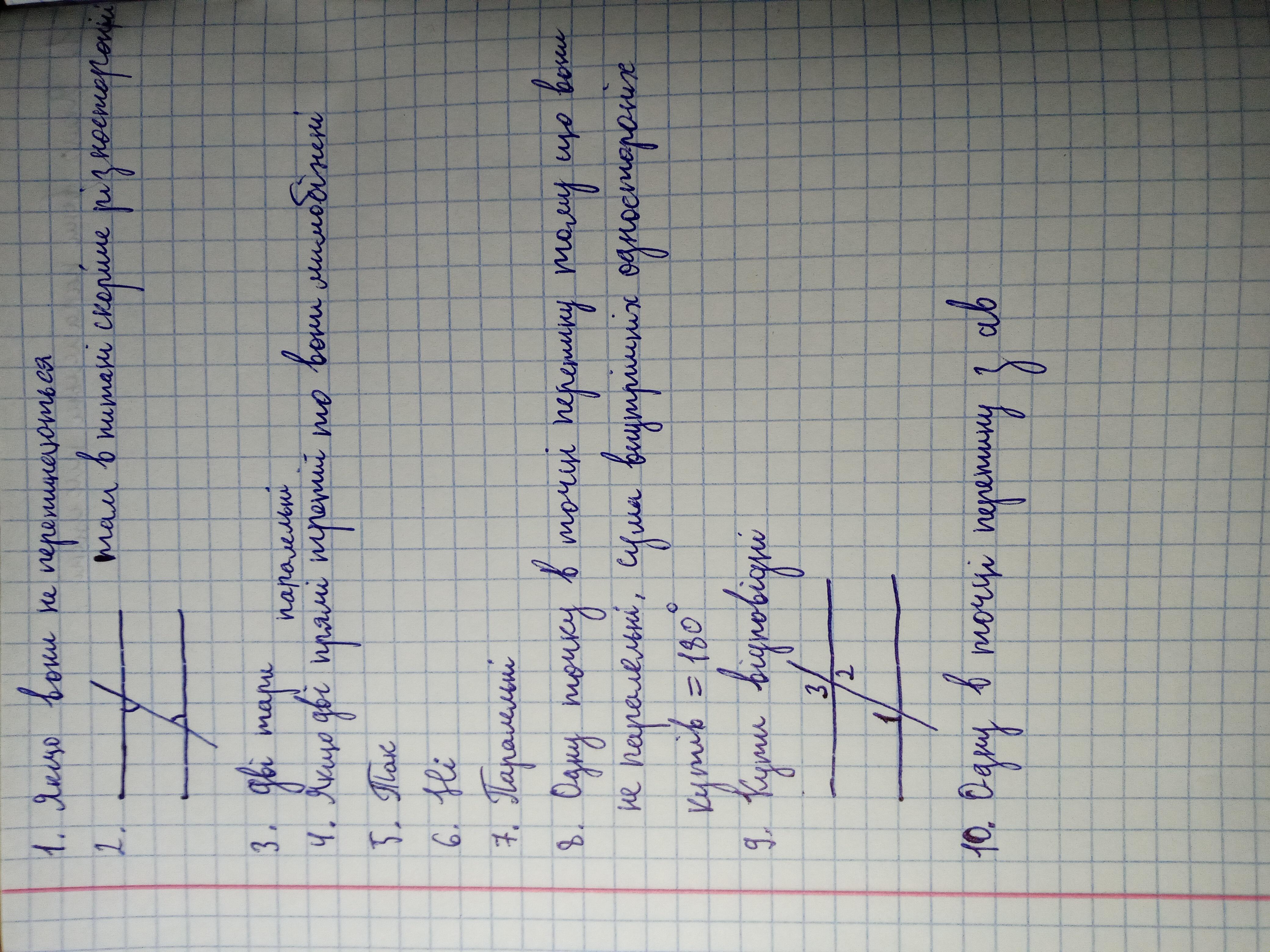 1. Закінчіть речення: Дві прямі на площині називаються паралельними, якщо...