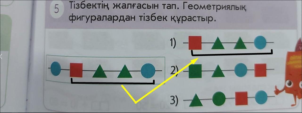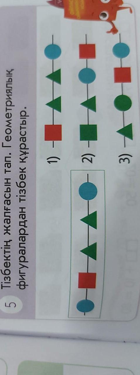 Ответ: 1) красный квадрат , два зеленных треугольника , синий круг