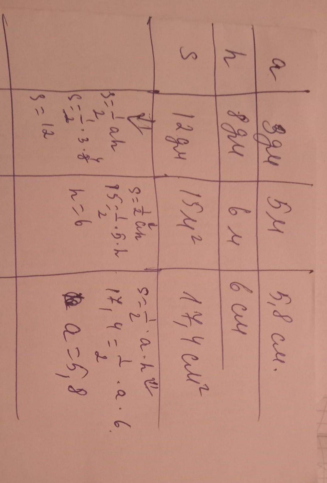 формула площади : 1/2×a×h. устанавливаем значения соответственно и рассчитываем как в уравнении. думаю понятно