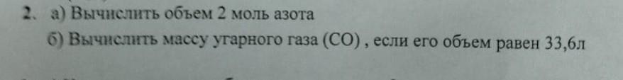 2.Вычислить массу угарного газа (CO), если его объем 33,6 л.