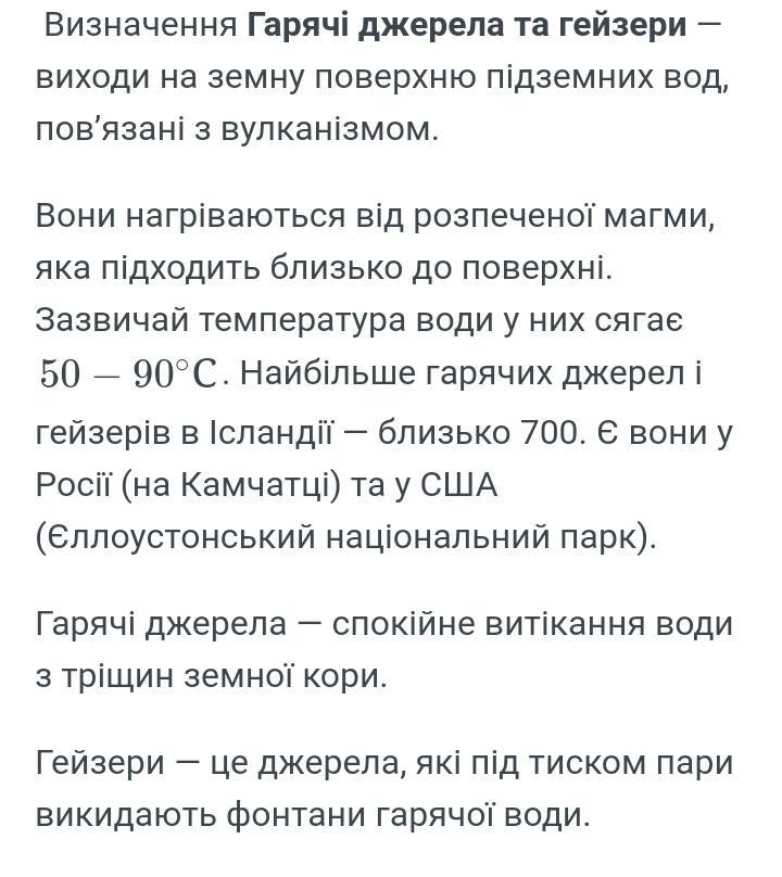 Гейзери — це джерела, які під тиском пари викидають фонтани гарячої води.