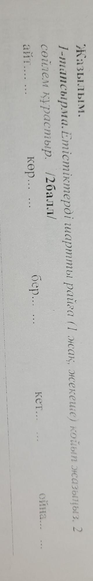 Сұрақты жақсылап оқыған жоқсыз. Жазылып тұр ғой, шартты райға айналдырып жазу керек. Сіздікі дұрыс емес