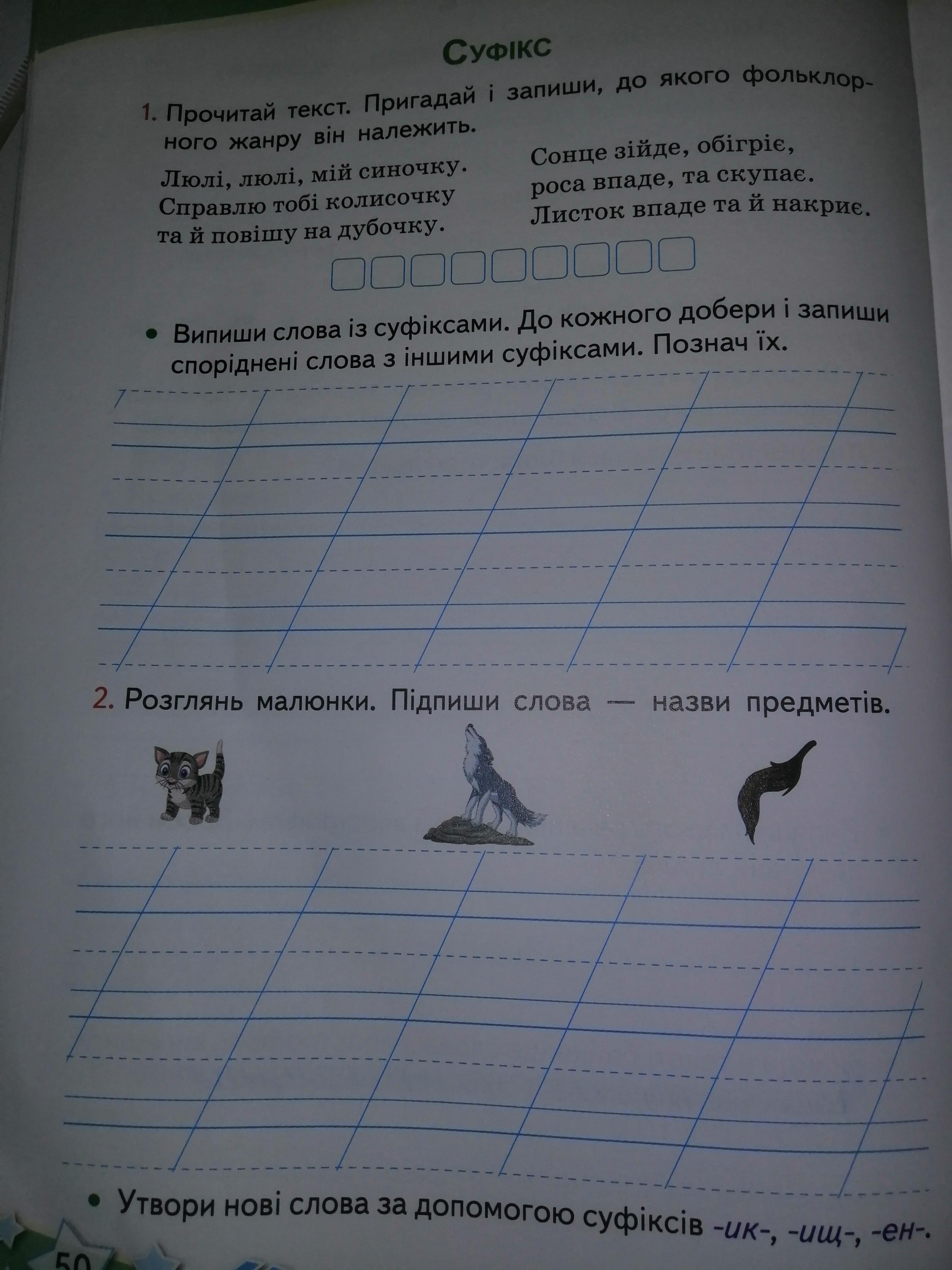 2. Кіт - котик, котеня; вовк - вовчище, вовчик, вовченя; хвіст - хвостик; хвостище.