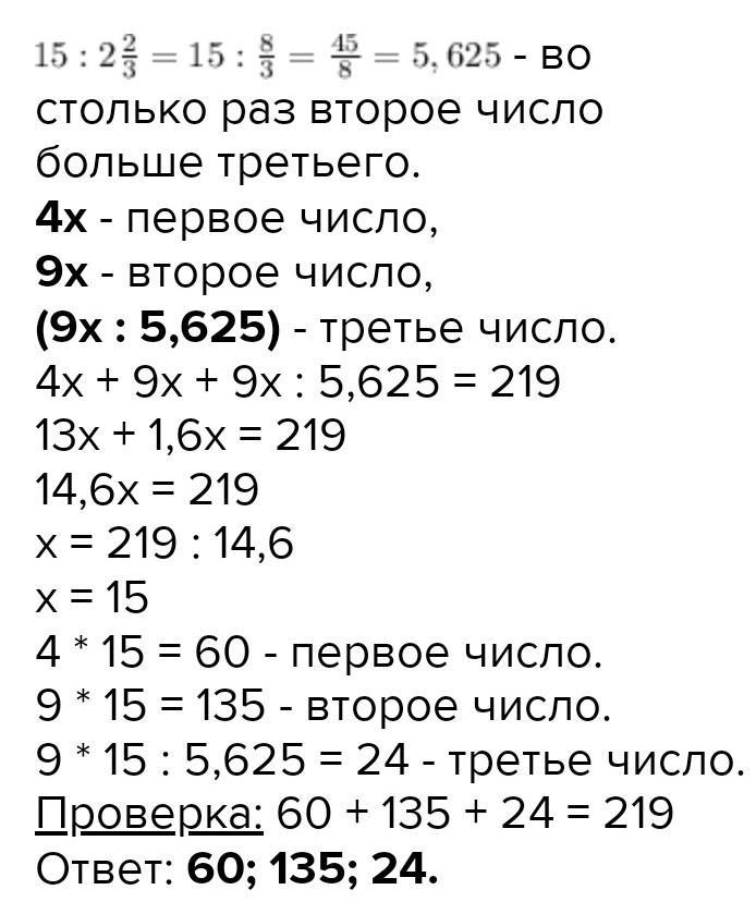 Найдите эти числа, если их сумма равна 219