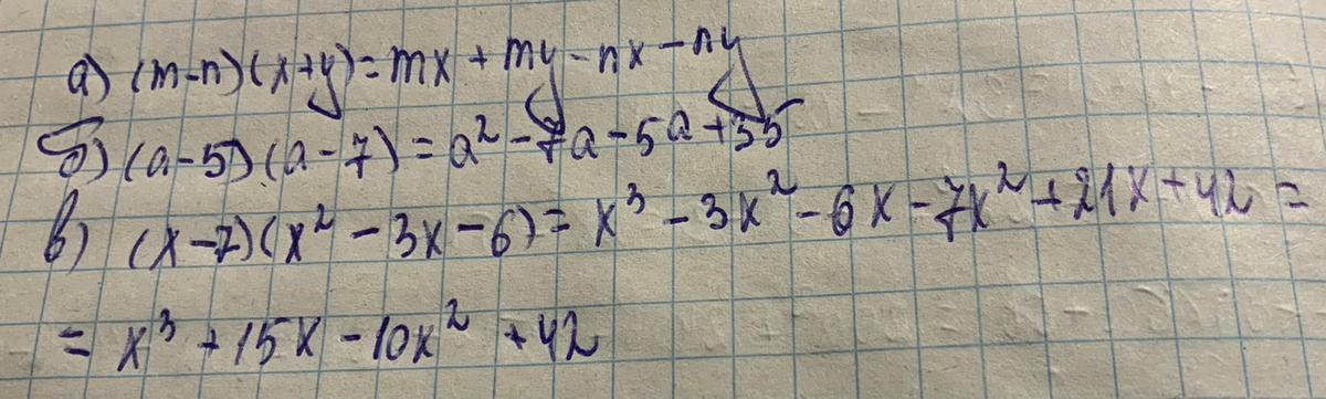 (x-7)(x²-3x-6)=x³-10x²+15x+42