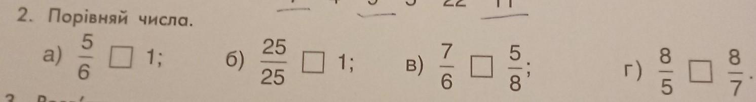 У третьому так, тому що 7/6 — це неправильний дріб, а 5/8 — ні.