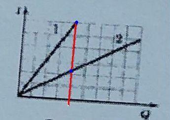 На рисунку зображено графік залежності температури отриманої кількості теплоти для двох рідин однорідної маси . У якої з рідини питома теплостность більша? У скільки разів? Обгрунтуйте