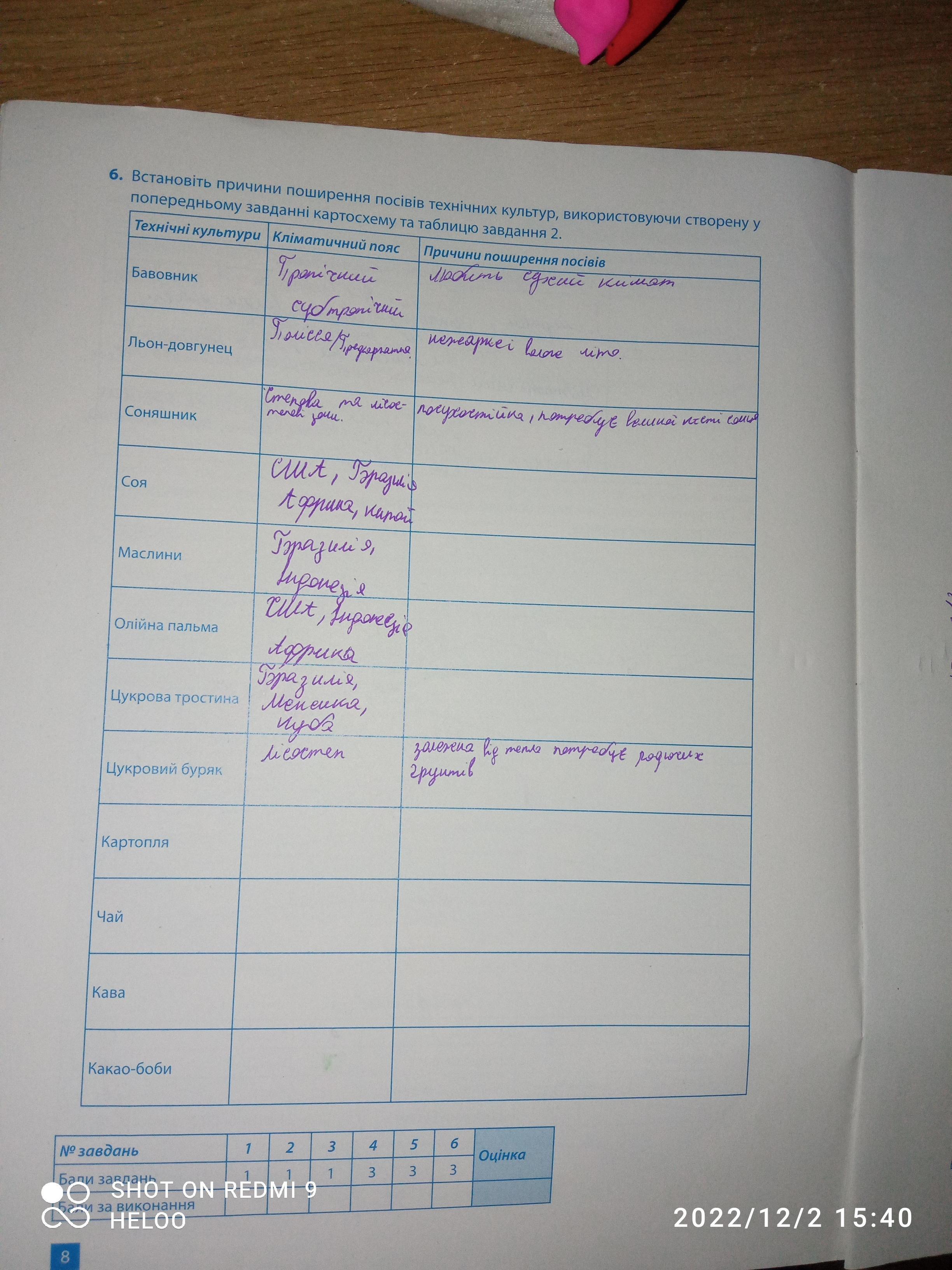 6. Встановіть причини поширення посівів технічних культур, використовуючи створену у