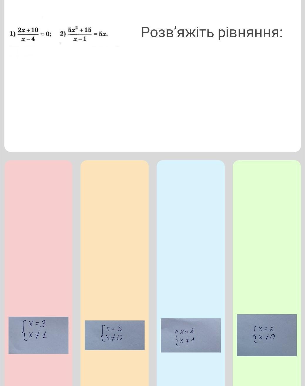 1) 2x+10 x-4 = 0; 2) 5x +15 x-1 5x.