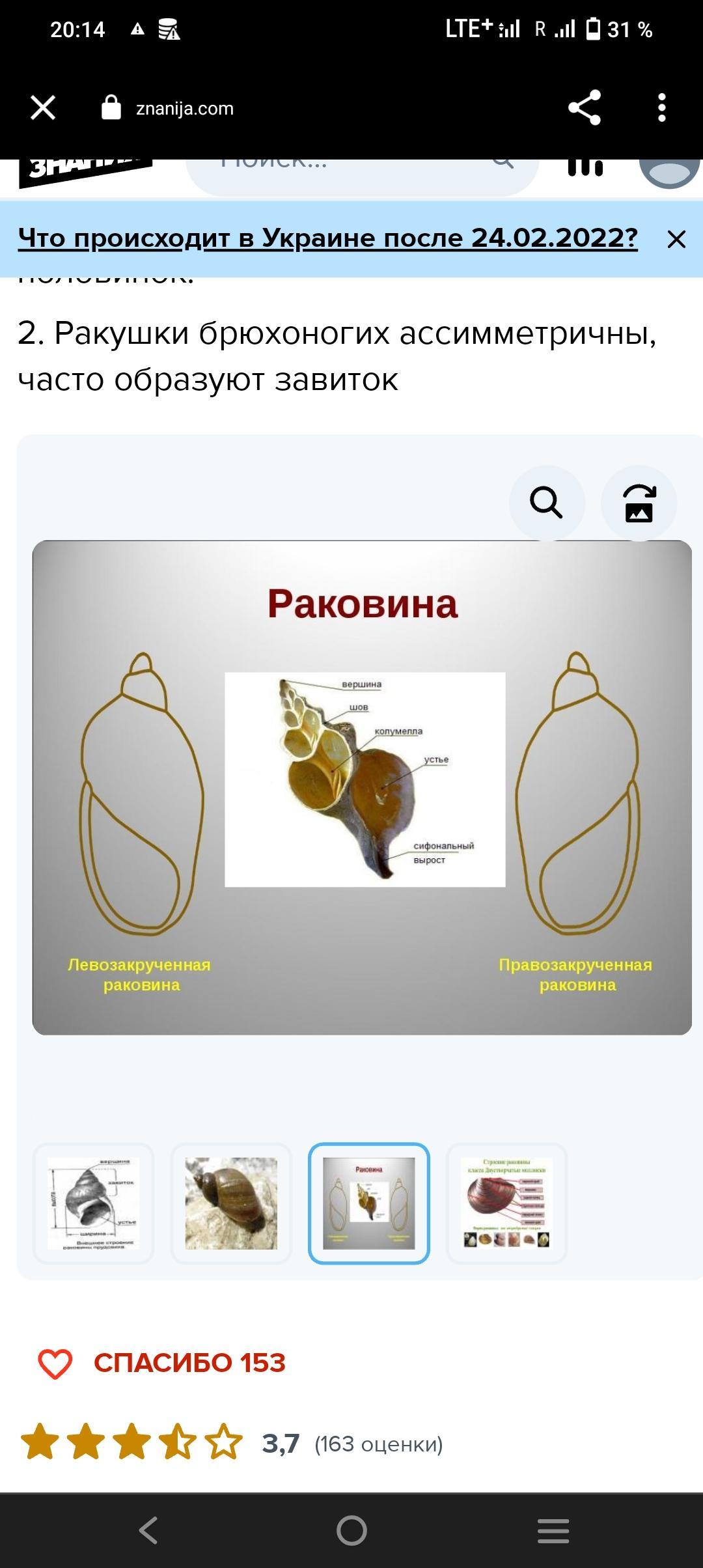2. Ракушки брюхоногих ассимметричны, часто образуют завиток