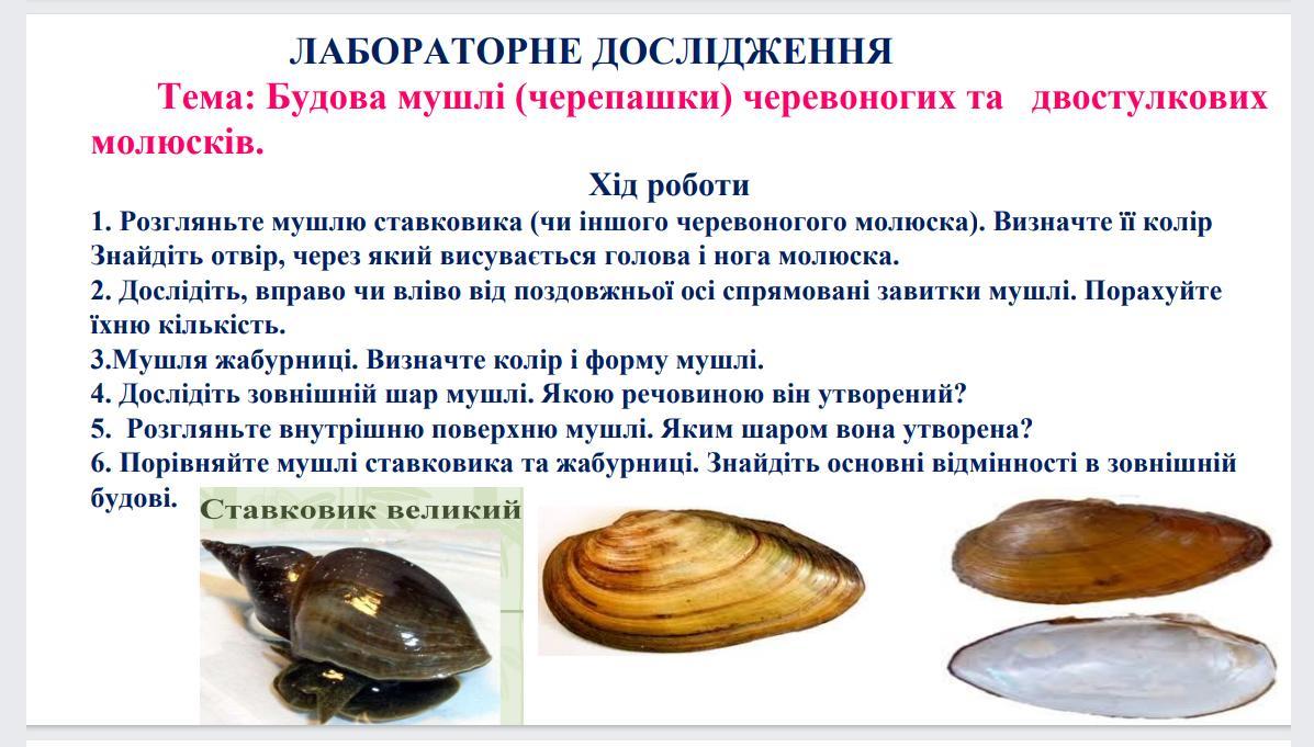 Строение раковины (ракушки) брюхоногих и двустворчатых моллюсков