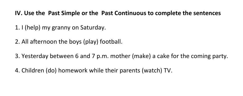 3. Yesterday between 6 and 7 p.m. mother was making a cake for the coming party.