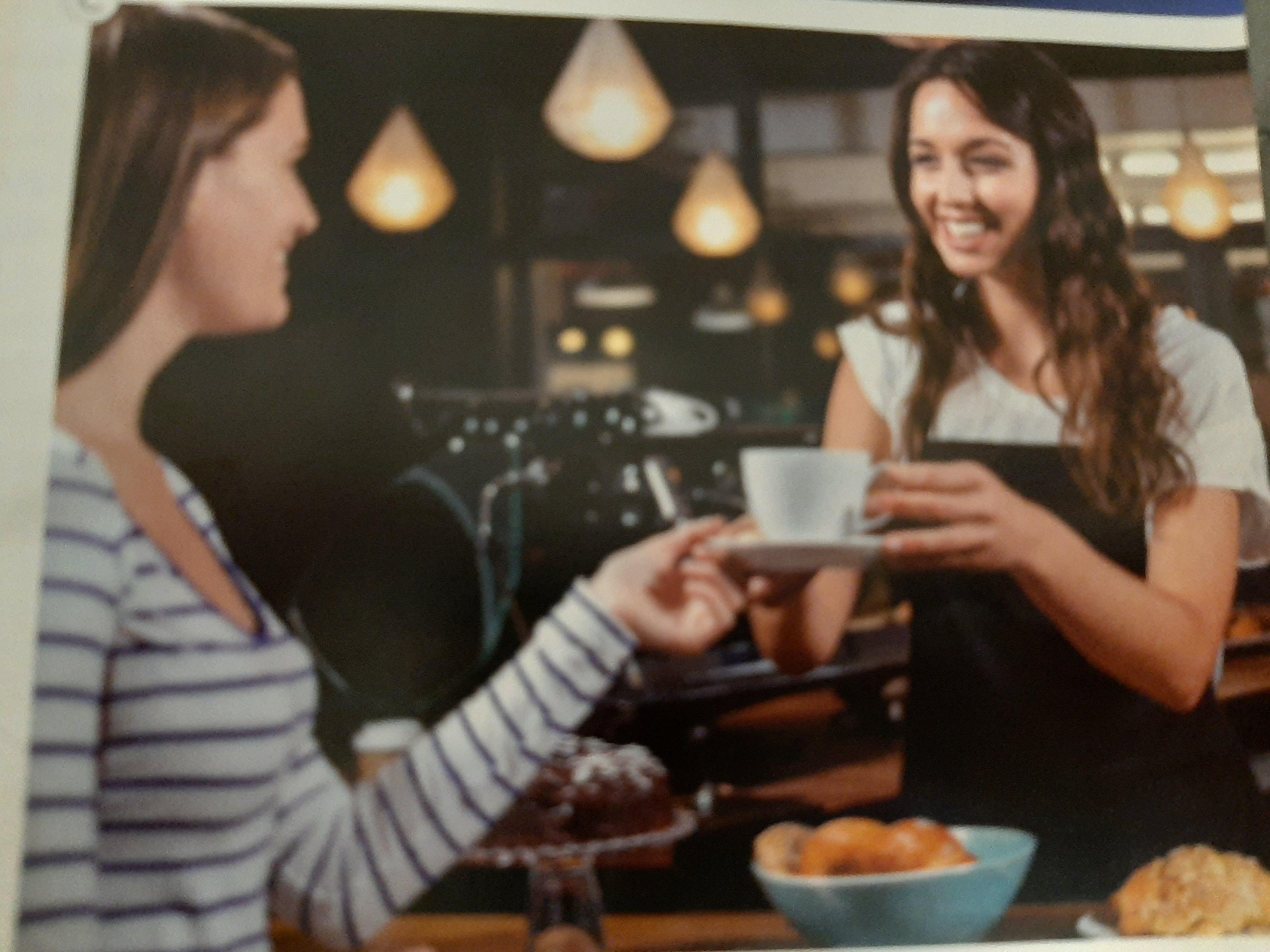 Відповідь there is two womans in the cafe and there talking about coffe.