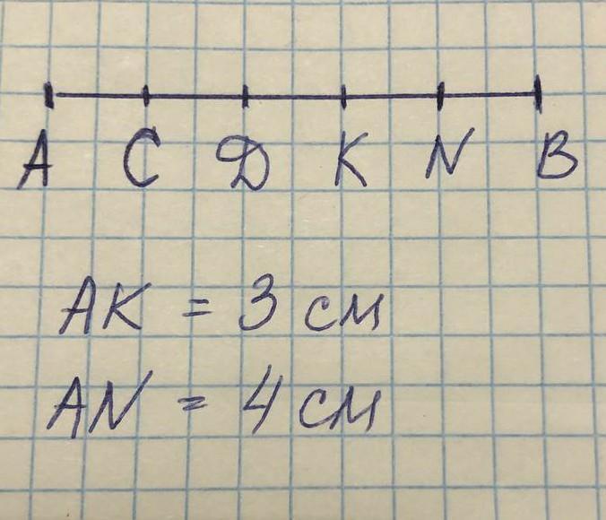 ньому кожен сантиметр літерами С, D, K, N. Чому дорівнює довжина