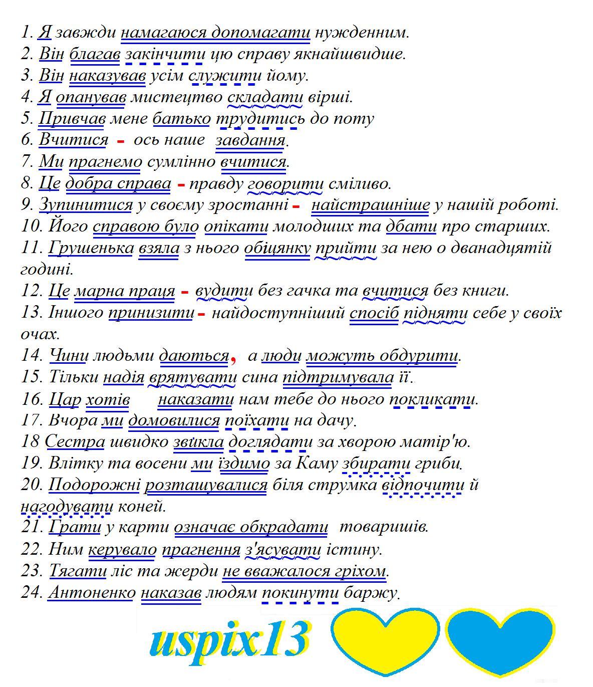 5. Привчав мене батько трудитись до поту 6. Вчитися ось наше завдання