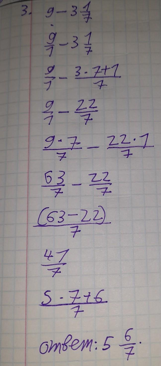 9 - 3 1/7 = 8 7/7 - 3 1/7 = 5 6/7