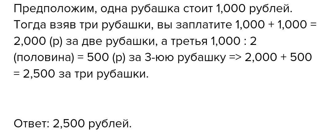 Ответ : покупатель заплатит 7520 тг на 2 школьные рубашки и на 1 модельную рубашку