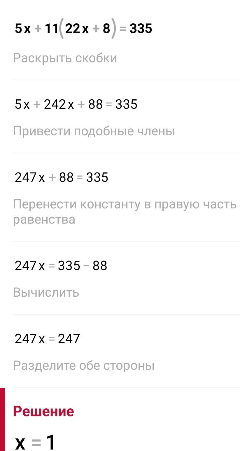 5x +11(22x + 8) = 335