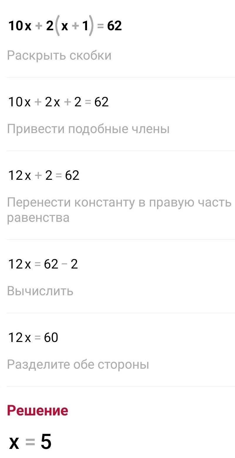 10x + 2(x + 1) = 62