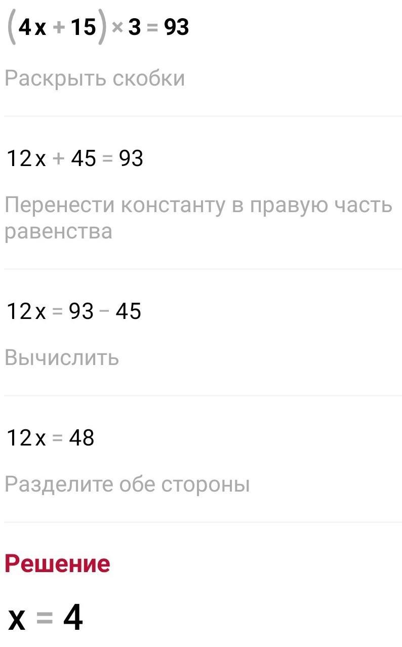 (4x+15) 3 = 93