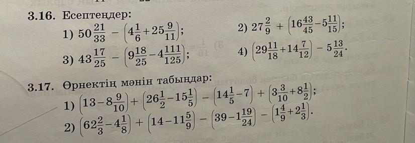 3.16 1) 50 21/33 - ( 4 1/6 + 25 9/11) = 50 42/66 - ( 4 11/66 + 25 54/66) = 50 42/66 - 29 65/66 = 49 108/66 - 29 65/66 = 20 43/66