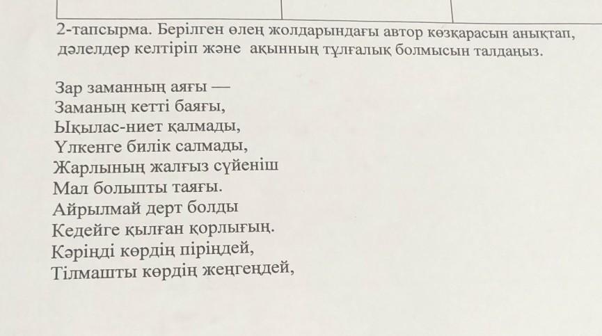 пж помогите 2-тапсырма.Берілген өлең жолдарындағы автор көзқарасын анықтап, дәлелдер келтіріп және ақынның тұлғалық болмысын талдаңыз.Пж за 70баллов