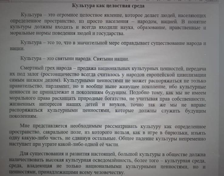 - Я согласна с мнением публициста. Культурные ценности - это душа народа, не принадлежащая никому, но хранимая и преумножаемая, передающаяся от поколения к поколению. Утрата, подмена, искажение ценностей разрушает народ, приводя к историческим катастрофам.